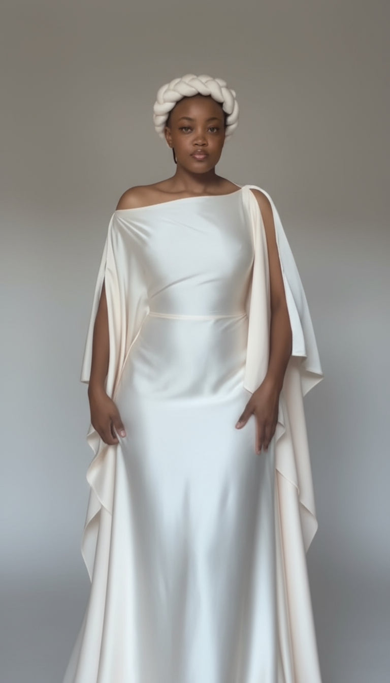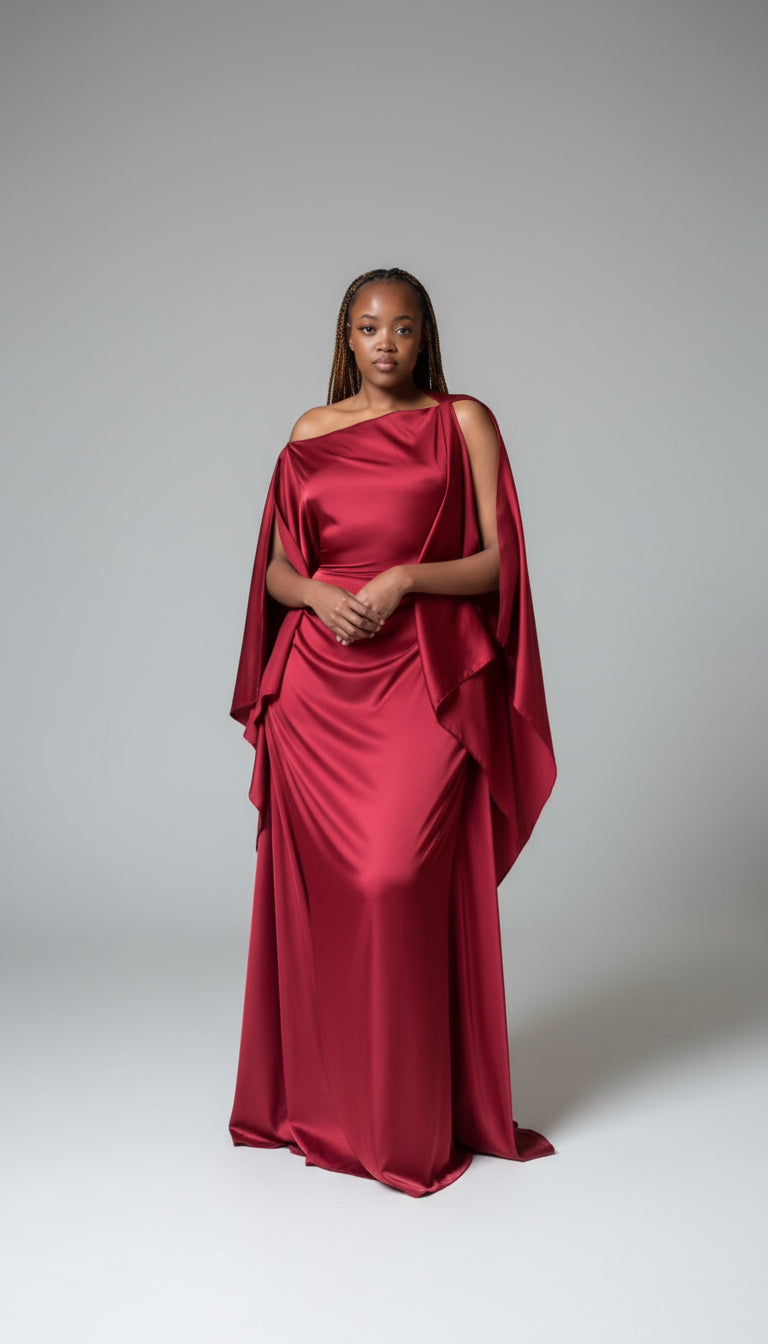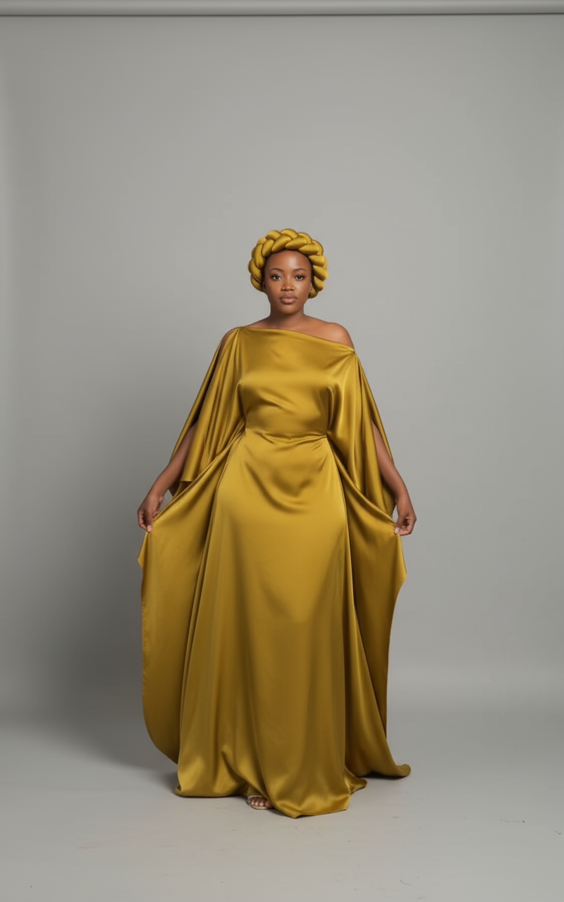 This open shoulder satin butterfly dress is a dreamy, effortlessly elegant piece designed to flow with every movement. The silhouette is soft and unstructured, made from fluid, high-sheen satin that drapes beautifully over the body like liquid silk.